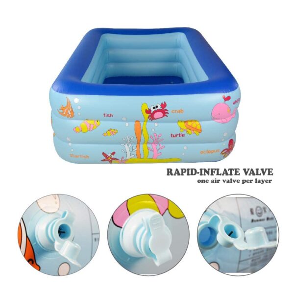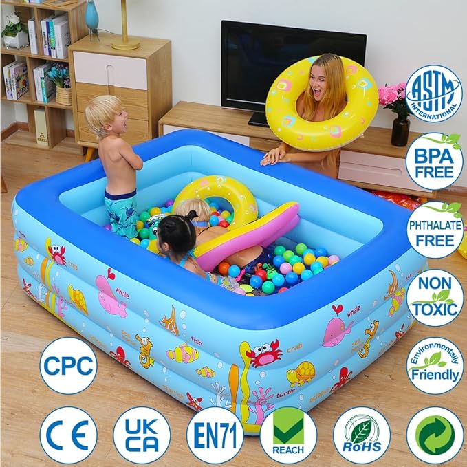 এই Large Inflatable Swimming Pool শিশু থেকে শুরু করে বড়দের জন্যও উপযুক্ত। শক্ত ও মোটা PVC ম্যাটেরিয়াল দিয়ে তৈরি হওয়ায় এটি টেকসই, নিরাপদ এবং দীর্ঘদিন ব্যবহারযোগ্য।