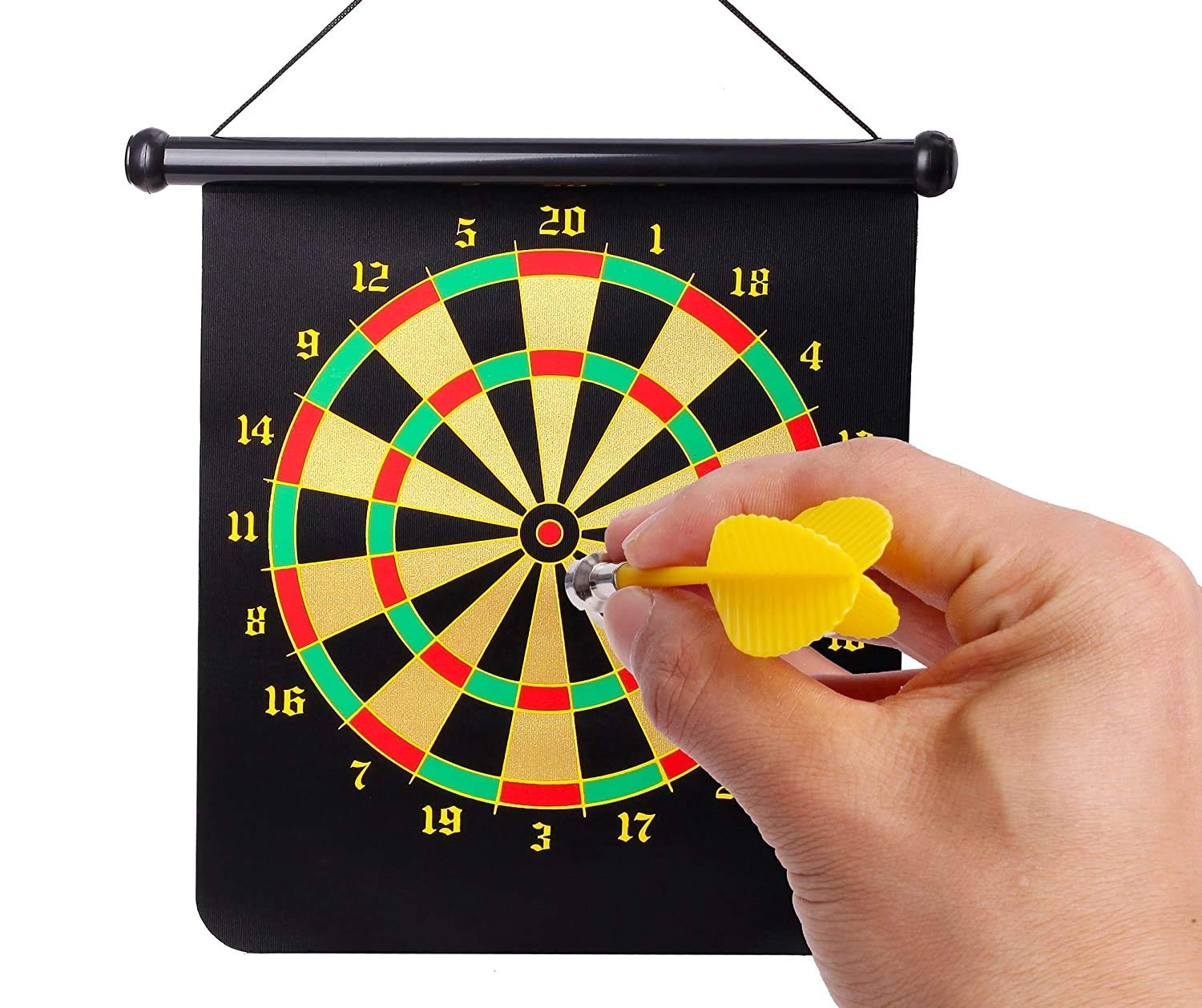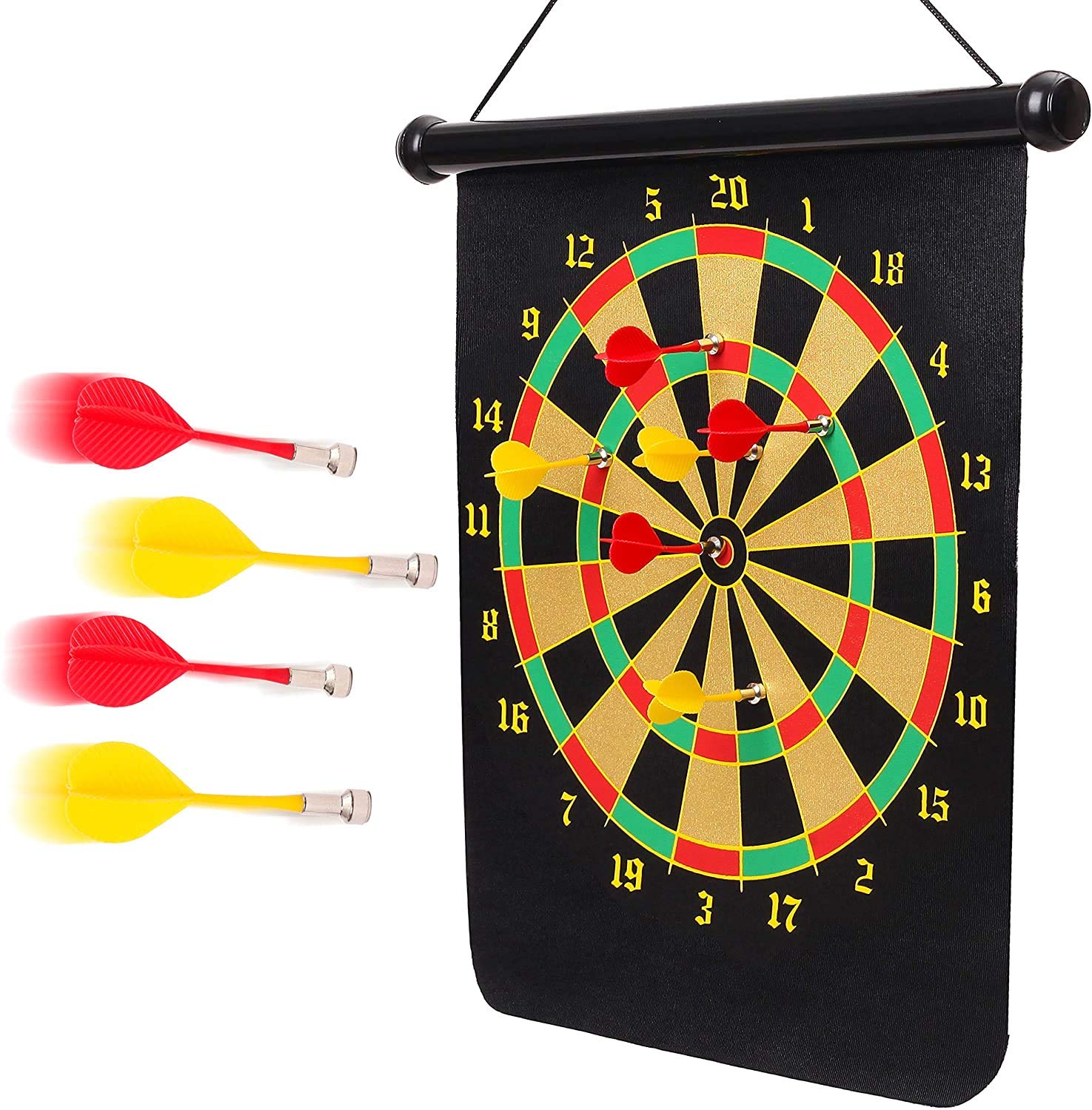 Magnetic Dart Board Game Set – Double Sided Roll-Up Target Board with 6 Safe Magnetic Darts for Kids & Adults