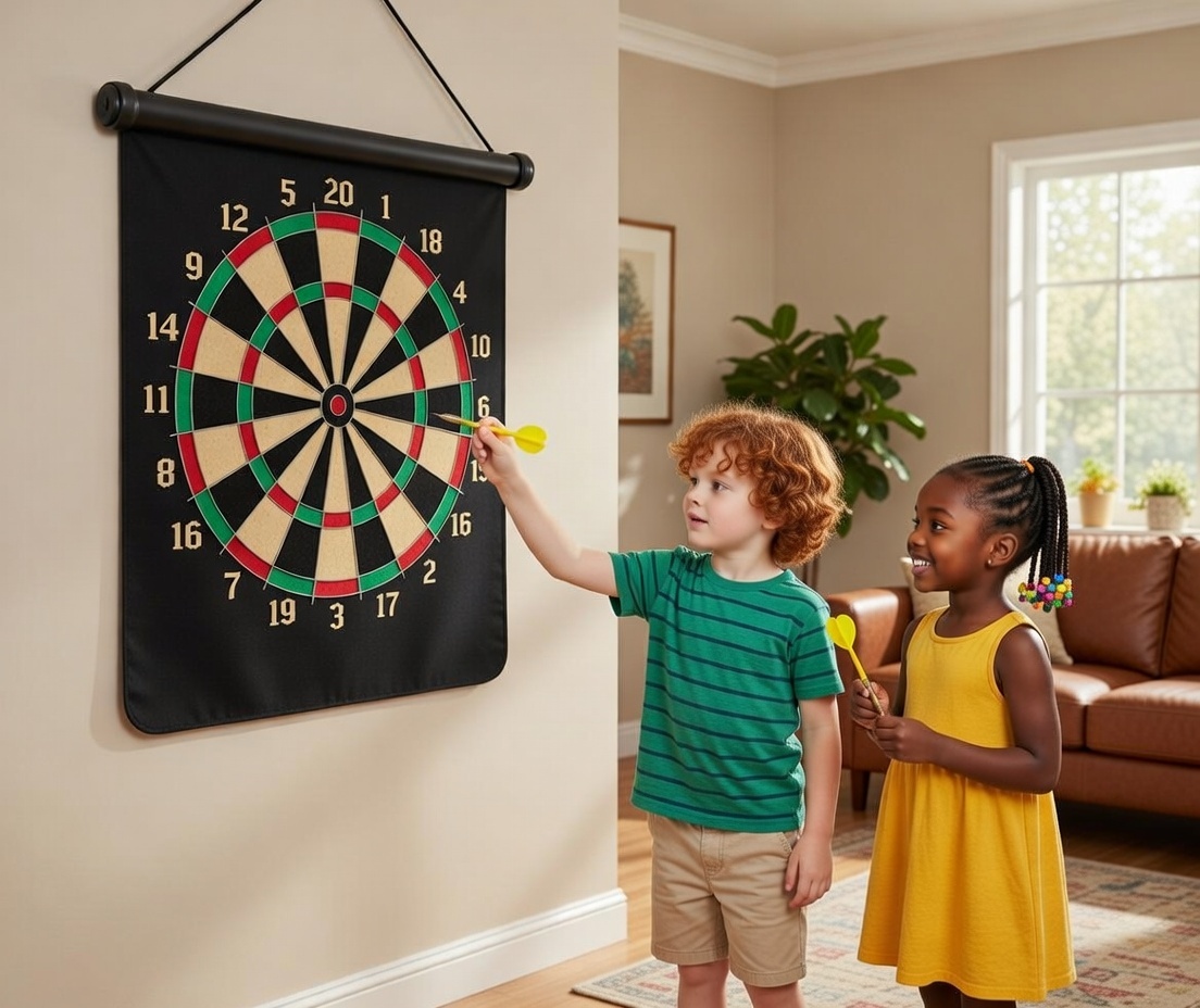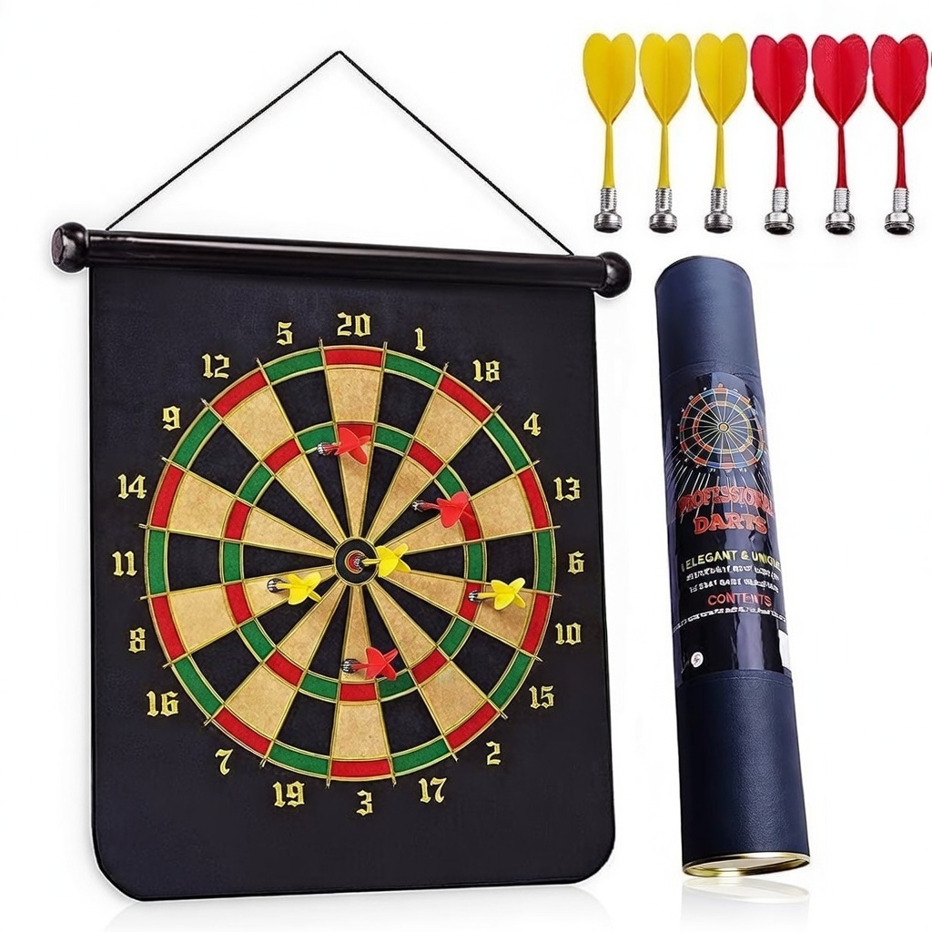 🧲 Magnetic Double-Sided Roll-Up Dart Board with 6 Safe Darts